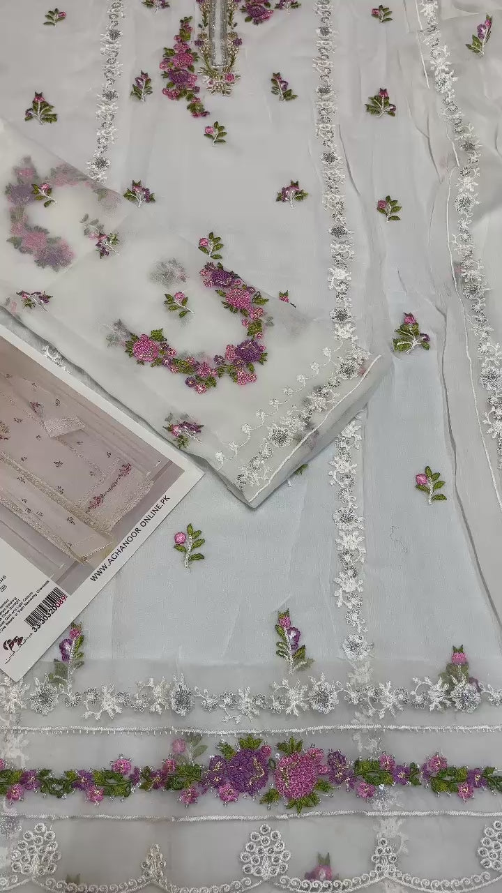 🌸 Borders: Semi Pure Embroidered Border for Sleeves + Organza Embroidered Border for Front – pure luxury in every detail
