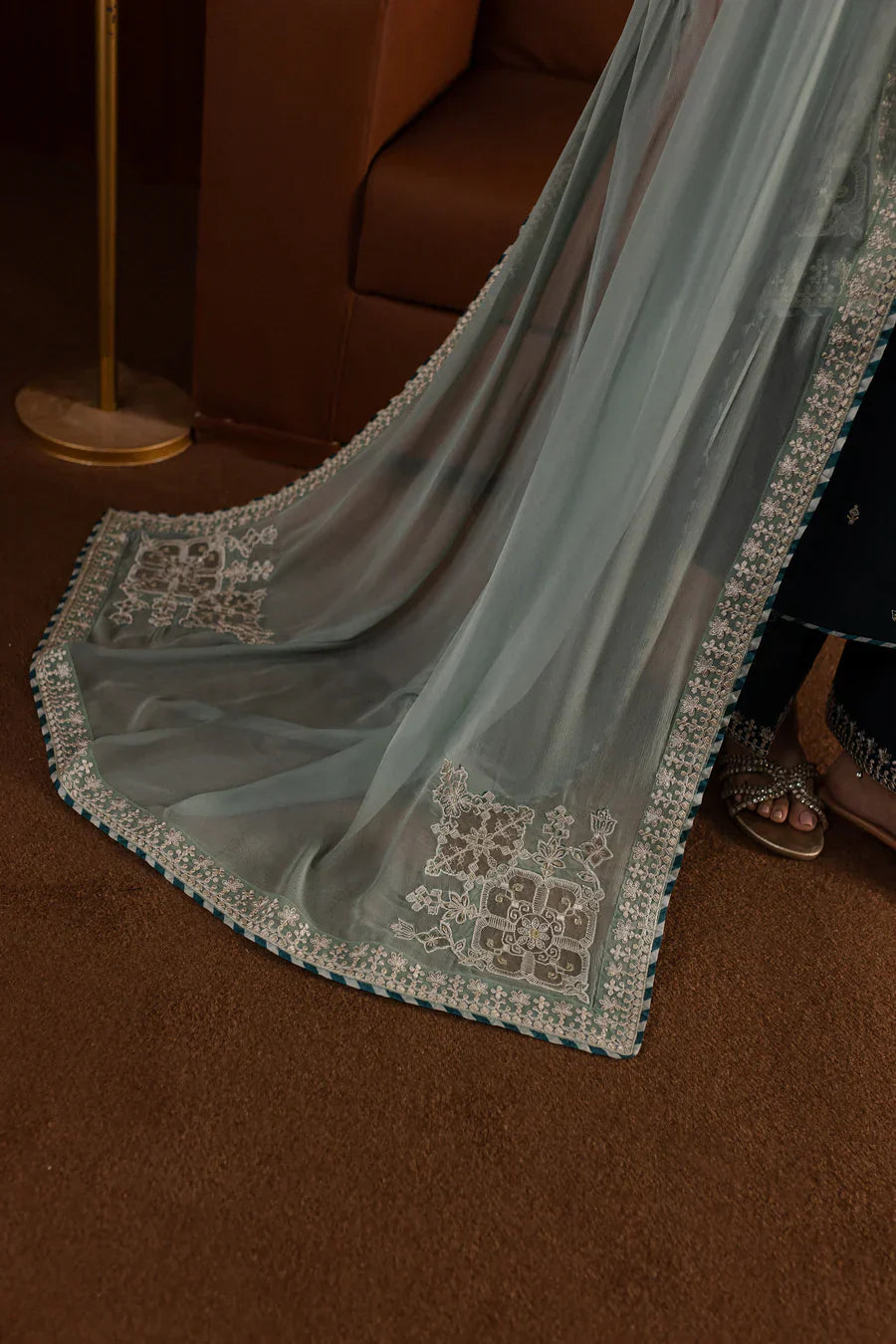 🌸 Dupatta: Embroidered Chiffon Dupatta with Lace (Pallu) Detailing
